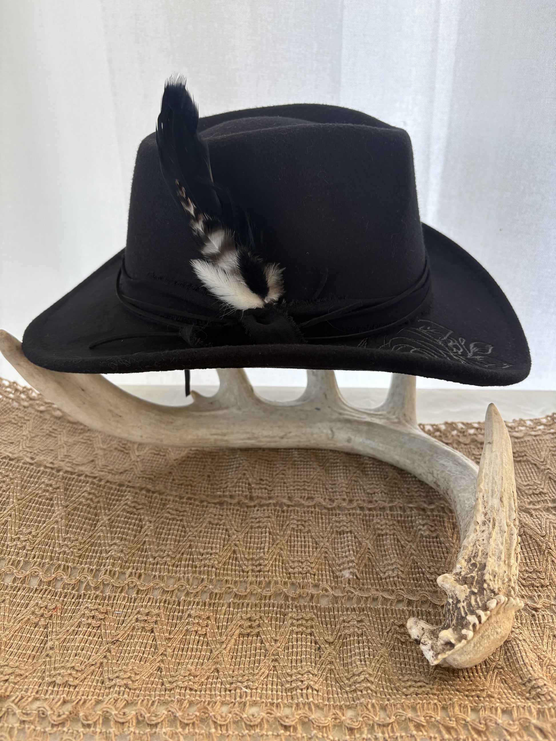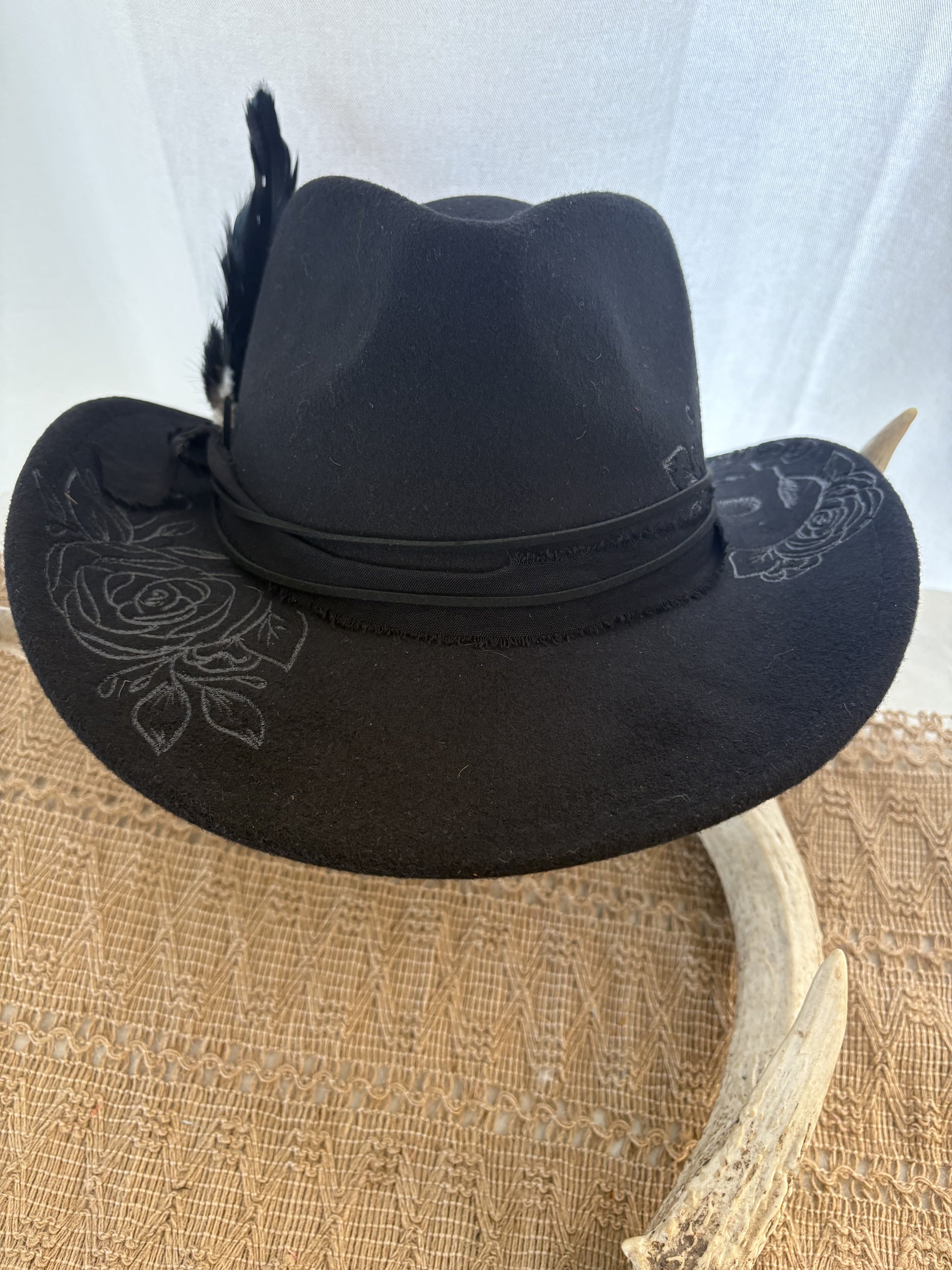 Get ready to tip your hat to the afterlife with the Calavera! This Dia de los Muertos-inspired black cowboy hat features a skull and roses design will turn heads anywhere you go.